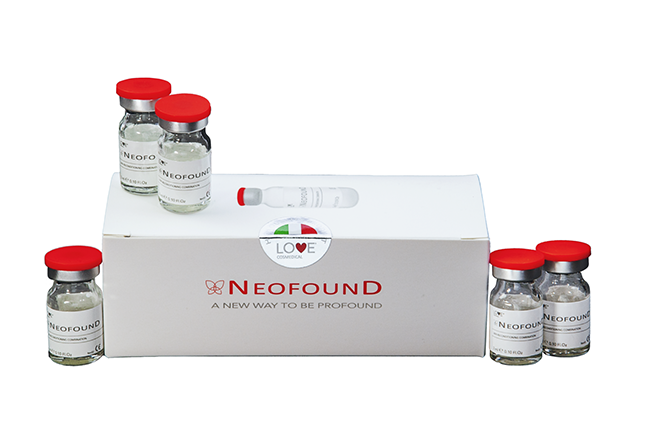 このようにネオファウンドは、高分子•低分子非架橋ヒアルロン酸と、3種のアミノ酸および抗酸化成分+ペプチドが主成分であり、自然な若さを目指す方に最適な、あらゆる肌トラブルを改善目的とする『肌再生型ECM製剤』です。